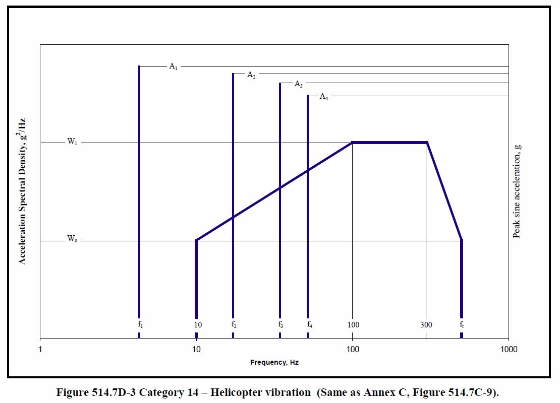 All aircraft have some levels of random vibration. In helicopters and propeller driven airplanes, the sine tones are produced by the main rotary components. In addition, sine tones can come from rapid gun fire events. Figure 1 shows a typical SoR helicopter vibration test profile from MIL-STD-810G.