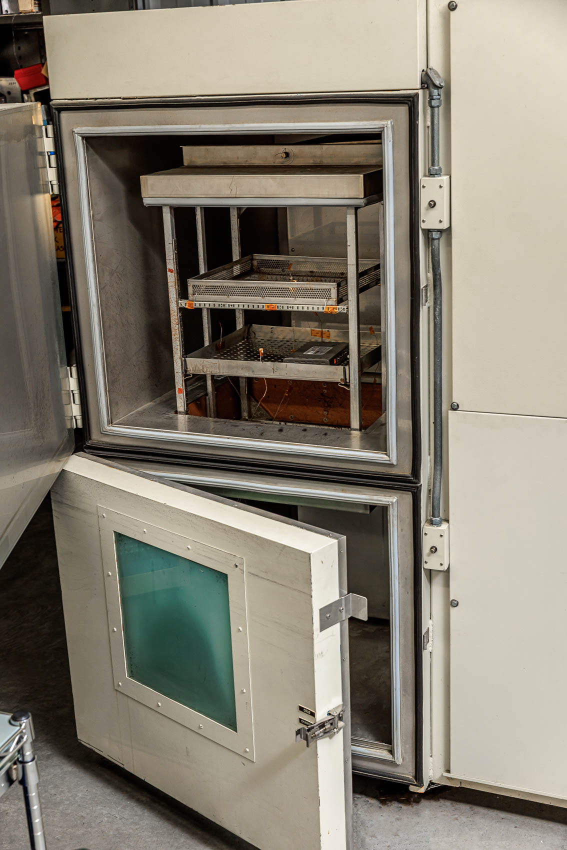 - Dual compartment chamber with moving carriage to shuttle between hot and cold chambers. Transfer between hot and cold chambers completed in seconds